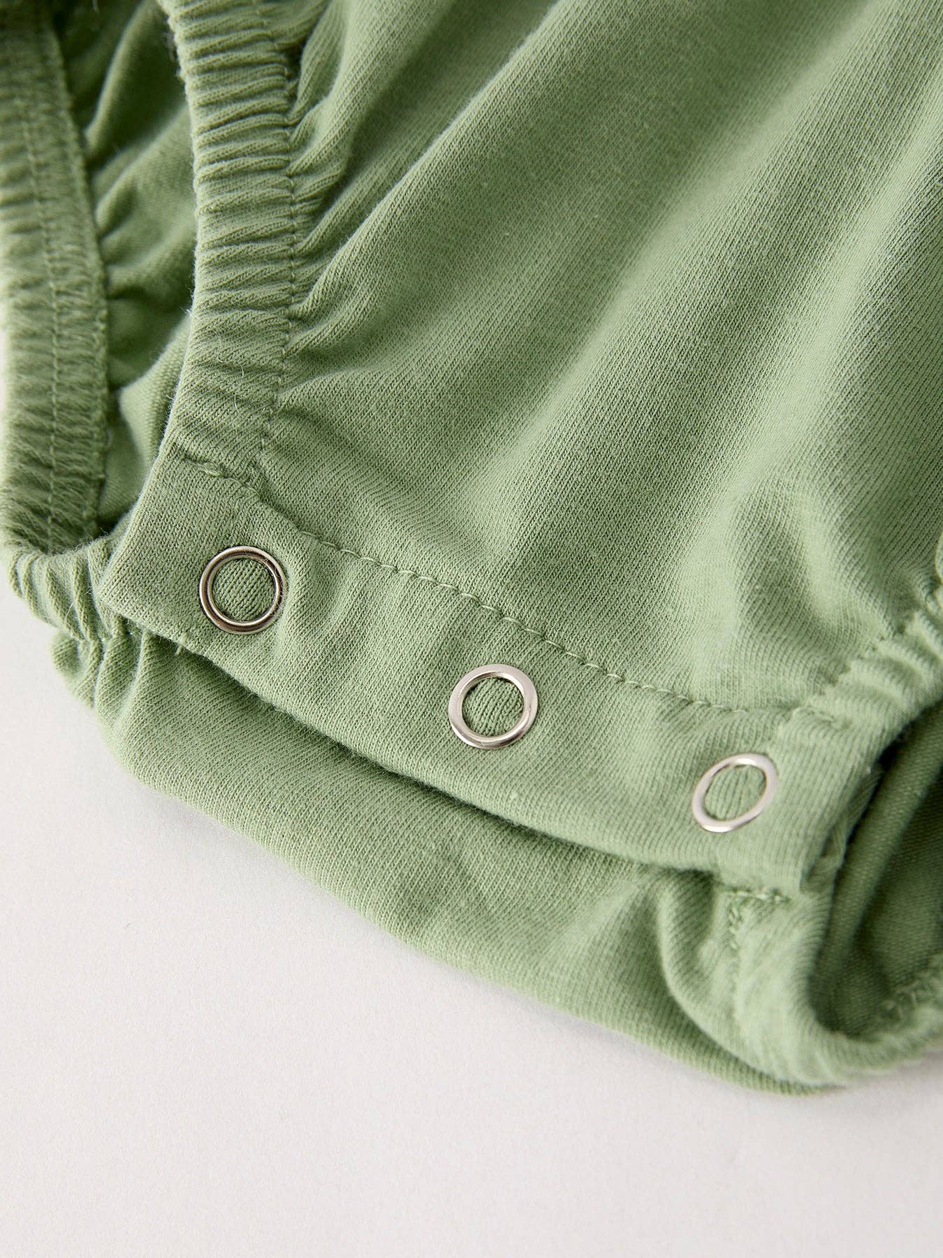 Celebrate the season in picture-perfect style! This sage green bubble is detailed with embroidered turkey smocking, delicate ruffled sleeves, and sweet ivory bow ties at the waist. It’s the perfect choice for family gatherings, preschool parties, or holiday photos you’ll treasure.