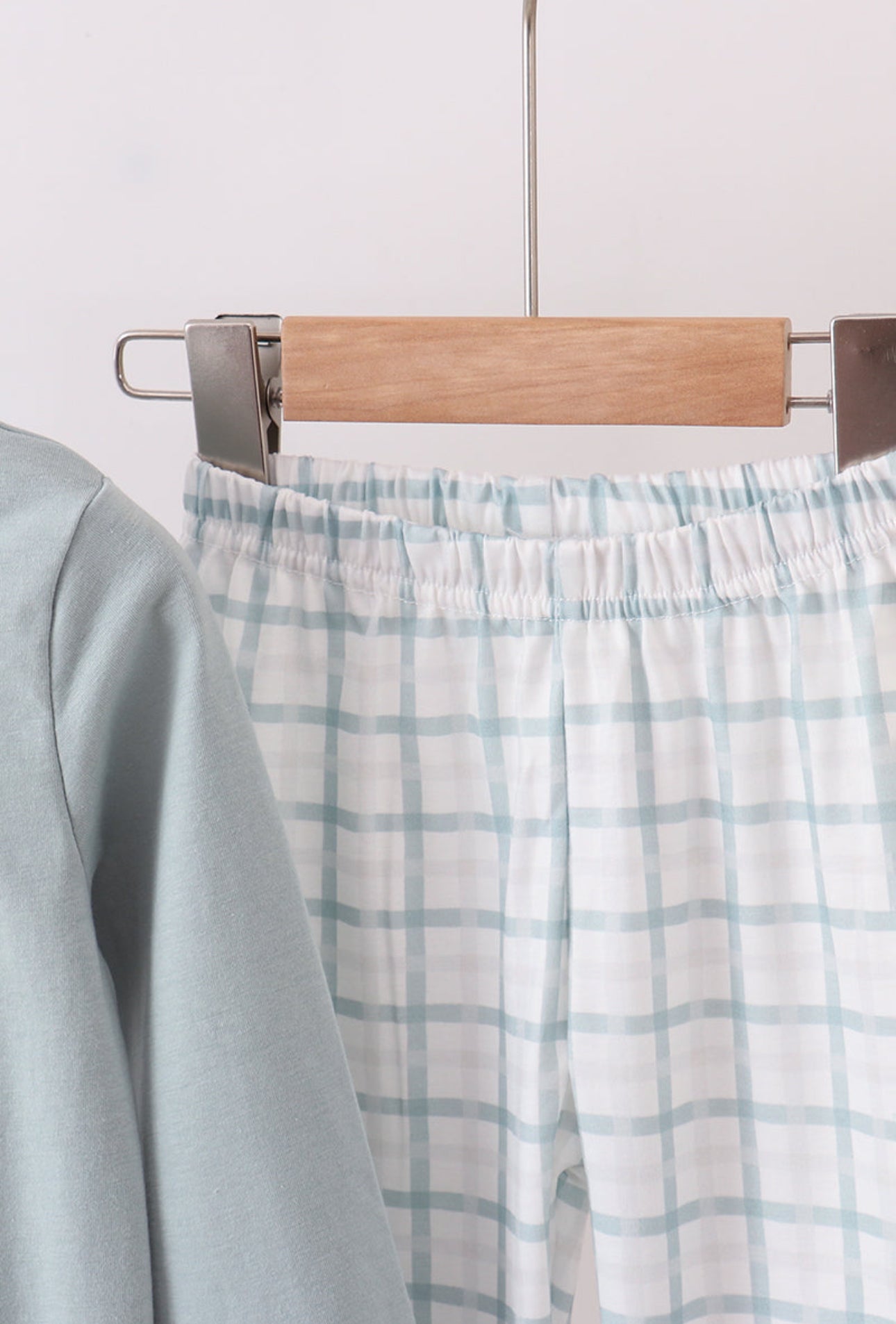 This two-piece set features a soft sage green top with adorable embroidered gingerbread friends and a matching gingham pant in coordinating winter hues. The relaxed fit and gentle stretch fabric make it perfect for playtime, lounging, or baking holiday treats with the family.