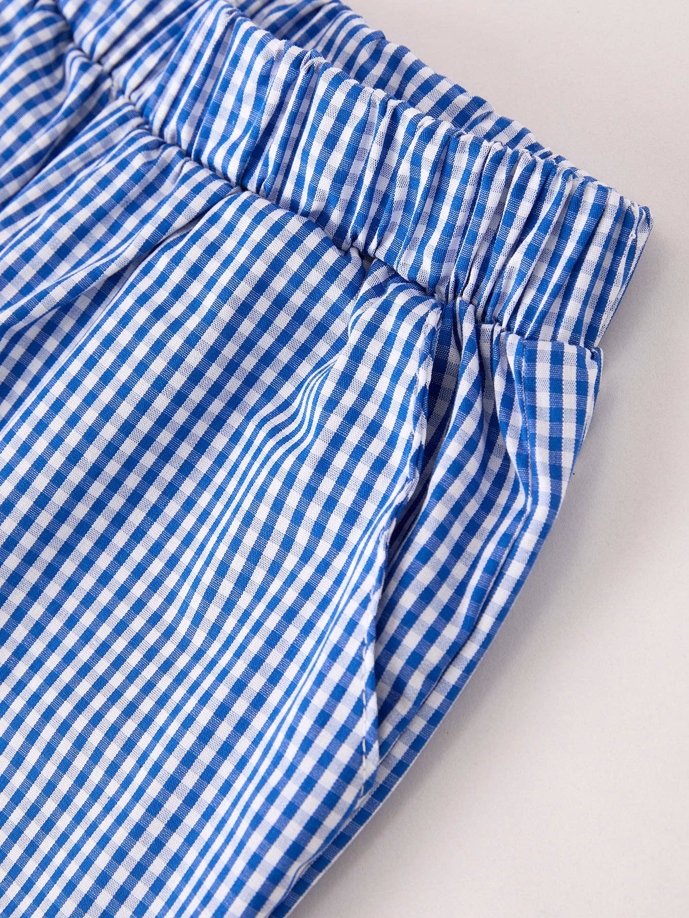 Celebrate the season with our Harvest Trucks Smocked Pants Set! This adorable two-piece outfit features a vibrant orange tee with hand-smocked trucks rolling across the chest, paired with classic blue gingham pants. Made from soft cotton, it blends comfort and style for your little one—perfect for fall festivals, Thanksgiving gatherings, or pumpkin patch adventures.