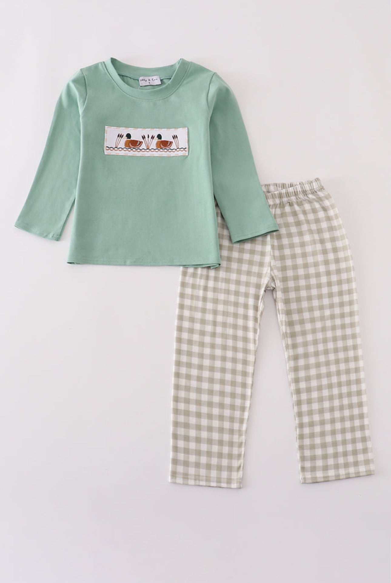 Classic style meets playful charm in this duck-smocked pants set. The sage green top features hand-smocked ducks in cattails, paired with neutral gingham pants for a timeless Southern look. Soft cotton keeps little boys comfortable while looking polished for any outing.